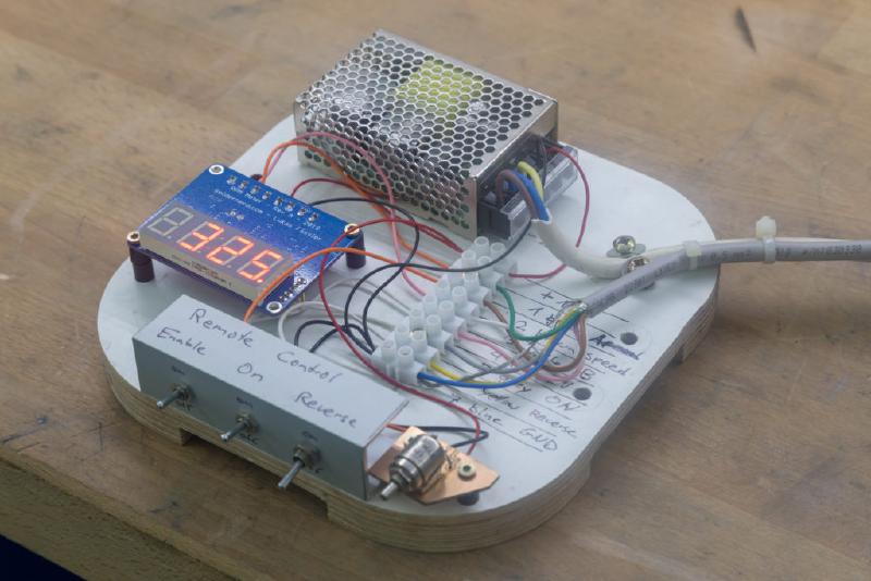 For testing the remote operation functionality, I had to build some sorts of a remote control first. Besides the switches and a pot it also needed an RPM meter capable of dealing with quadrature signals. For the fun of it, I designed my own. I’ll describe that in a future post.