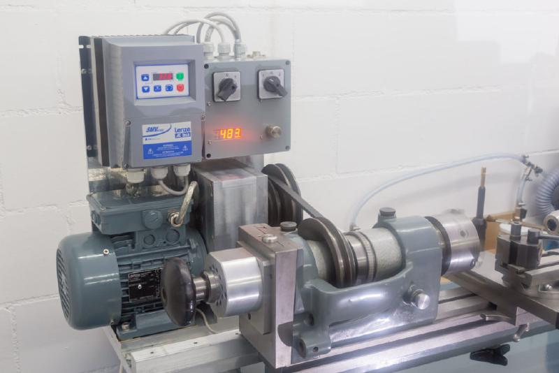 With the motor coated with 2-component paint in RAL7031 blue grey, everything was assembled and wired using shielded wires. All that remained was to install it on the lathe and to try it out.